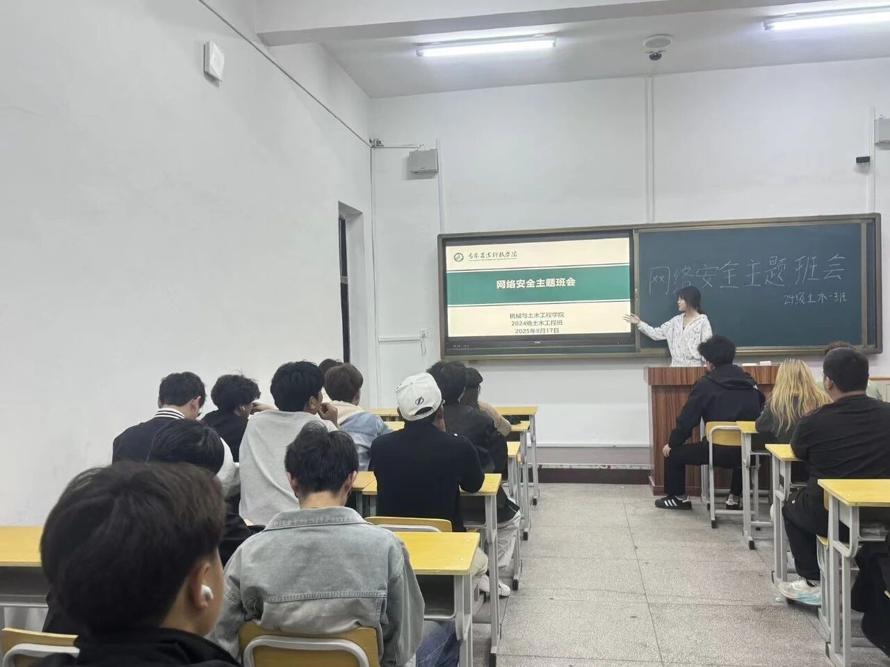 通知学院各班班长开展“网络安全”主题班会。在班会上,各班班长向同学们介绍中国大学生在线官网“AI护校园”网络安全防护智能体链接,引导同学们亲身体验AI技术如何赋能日常网络安全防护,提升风险应对能力。