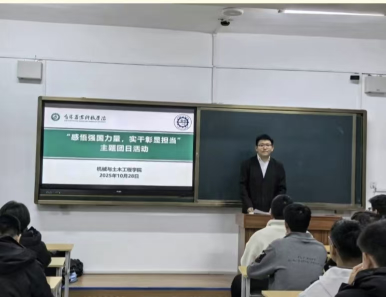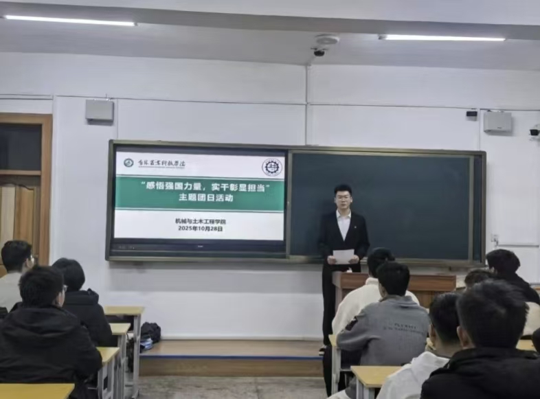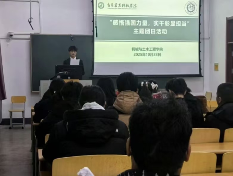 秋意正浓,初心滚烫。为传承红色基因、厚植爱国情怀,引导青年学子在强国征程中锚定“机械人”的使命坐标,机械与土木工程学院团委于10月28日19时在耕读楼晚自习教室组织开展“感悟强国力量,实干彰显担当”主题团日活动。本次活动以“沉浸观展+骨干领学+实践感悟”为脉络,将历史精神、时代成就与专业担当深度融合,让“强国有我”的誓言在青春中落地生根。