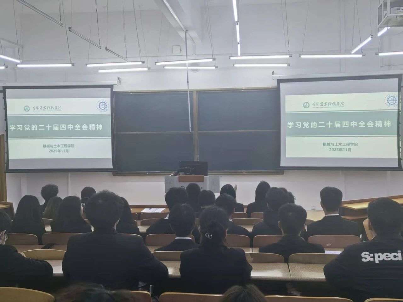 为深入学习贯彻党的二十届四中全会精神,2025年11月7日,机械学学生党支部、土木工程学生党支部全体学生党员于明仁楼203教室集中学习了党的二十届四中全会精神,我院全体辅导员老师出席。