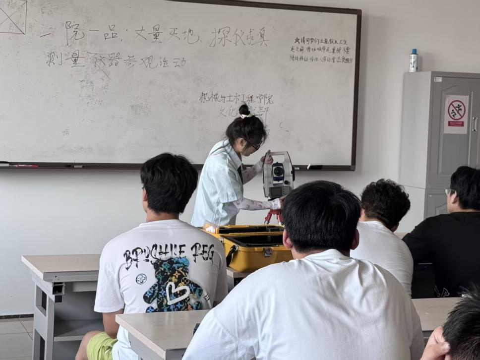学生会文化艺术部协同BIM测量协会于6月25日17:00在明德楼106开展了“丈量天地,探仪求真”——测量仪器参观讲解活动。活动旨在通过理论讲解与实操演示相结合的方式,帮助同学们深入了解全站仪、RTK、无人机等工程测量仪器。活动吸引了来自测绘、土木工程等多个专业的同学参与,我院全体辅导员老师也莅临现场,现场互动热烈。