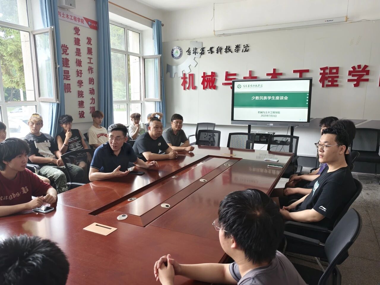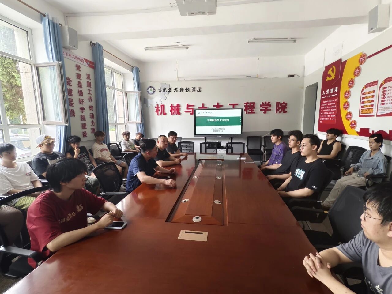 2025年7月3日中午12点整,我院在耕读楼会议室召开少数民族学生座谈会。学院党总支书记姚楠、学工办主任王嗣胤、副主任韩凯旭与各年级少数民族学生代表齐聚一堂,就学习生活情况展开深入交流。