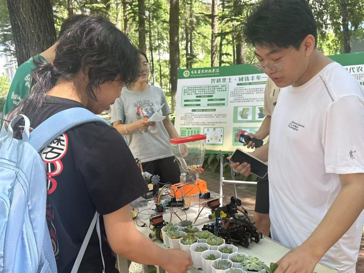 水利灌溉区更是惊喜满满!同学们自主研发的水肥一体化智能灌溉系统,抛弃复杂铺设套路,靠简洁设计实现精准 “解渴”,把水资源利用效率拉满。从机械原理到实际应用,每一处细节都藏着专业知识的 “小心机”,让农业灌溉不再是 “大水漫灌”,而是科技赋能的 “精准滴灌”。同时,活动设置趣味答题环节,同学们参与农耕知识竞赛,解锁传统农耕与现代农业的奥秘,让参与活动的同学们更容易了解机械知识,并沉浸式感受机械特色。