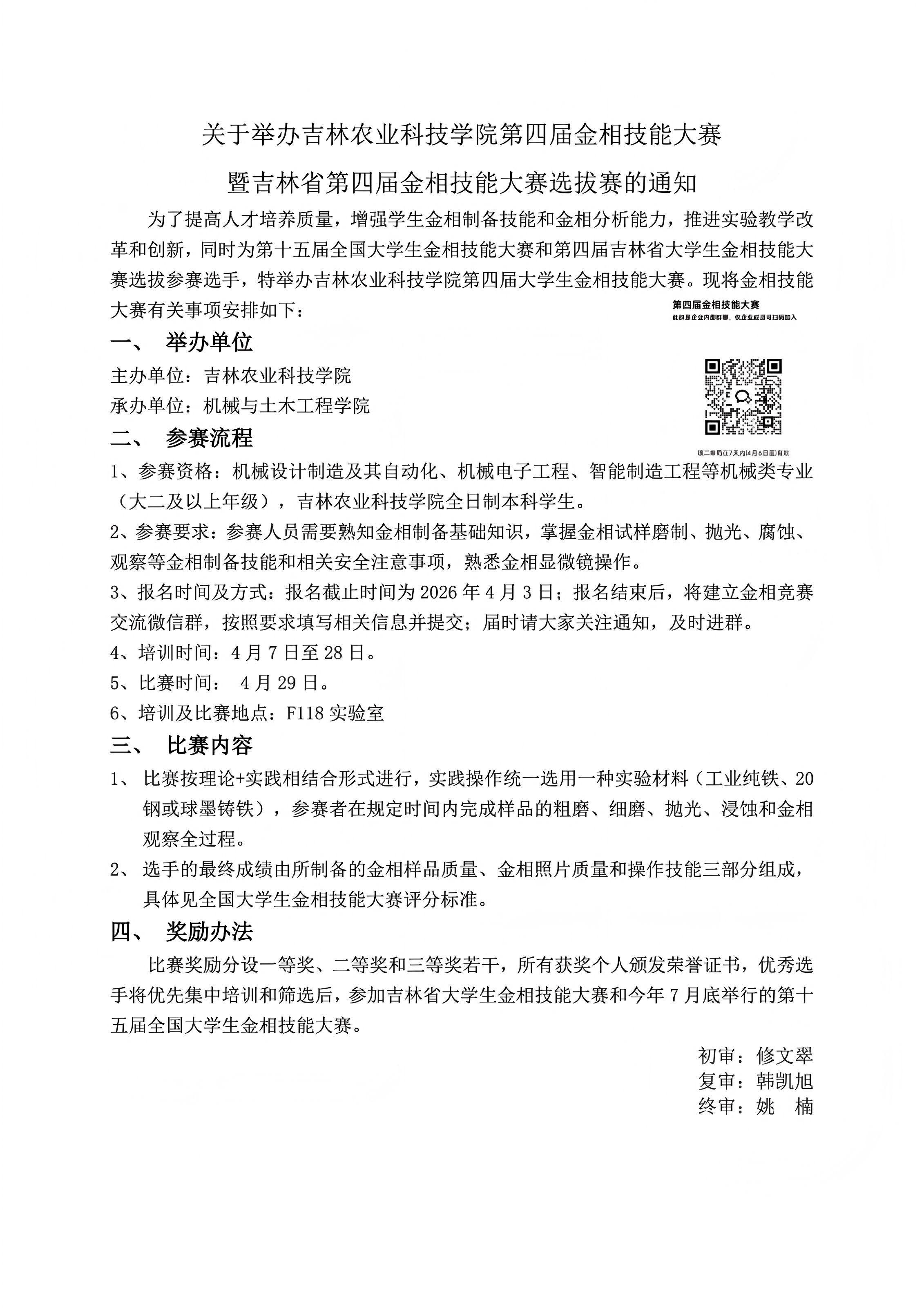 关于举办吉林农业科技学院第四届金相技能大赛暨吉林省第四届金相技能大赛选拔赛的通知