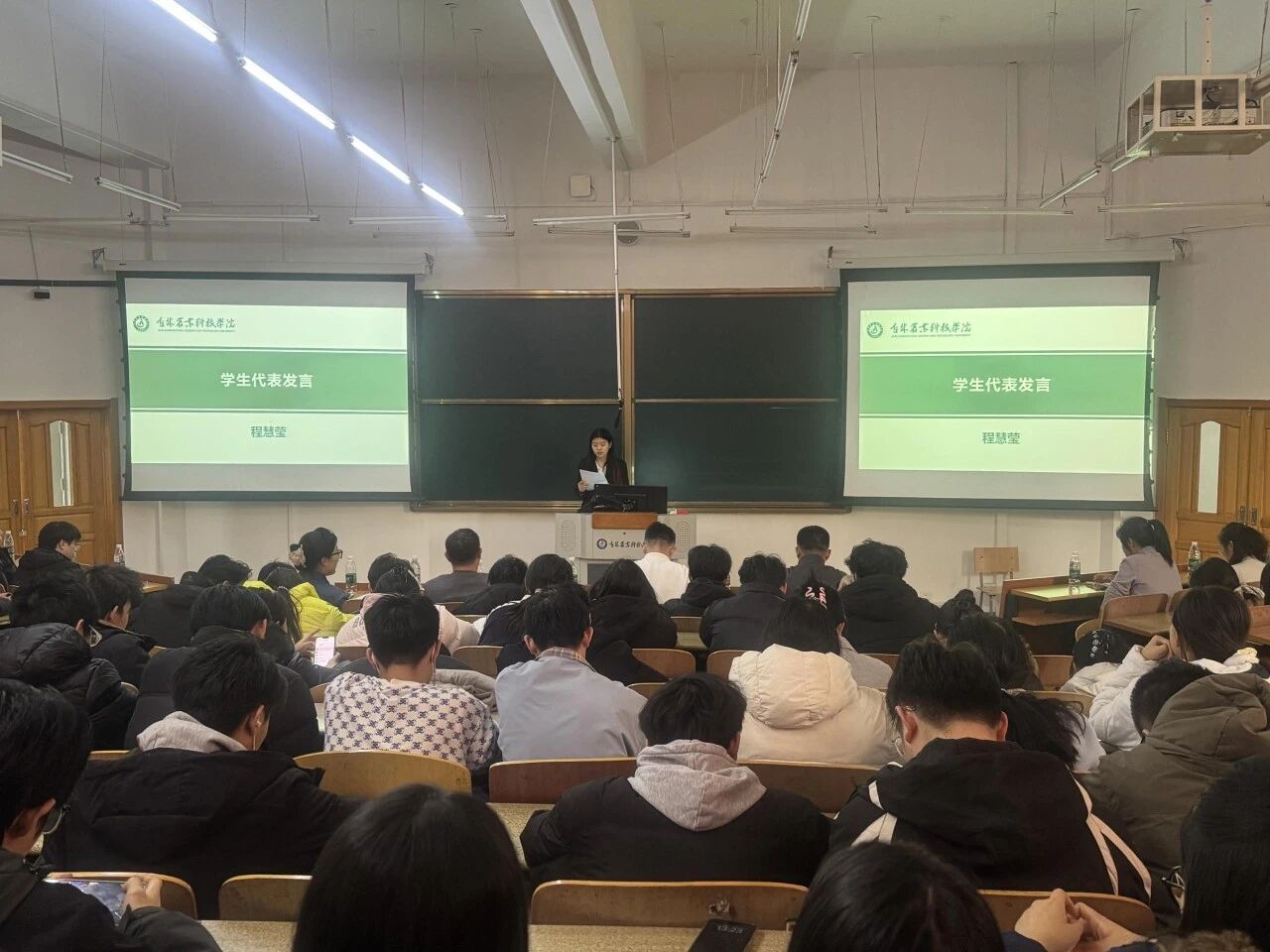 学生代表程慧莹同学代表全体2026届毕业生积极发声。她表示,全体同学已做好充分准备,将以饱满的热情、严谨的态度迎接实习挑战,在岗位上脚踏实地、勇于探索,主动克服困难、积累实战经验,不辜负学院与老师们的悉心培养,力争在实习中有所收获、有所成长。