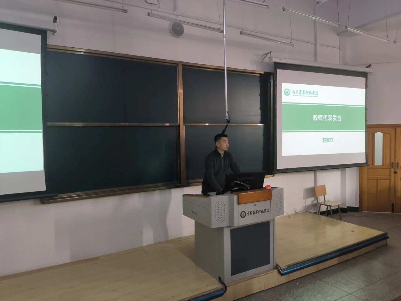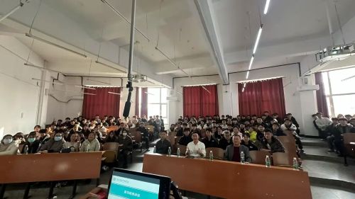 教师代表赵家立老师结合自身分享经验。他谈到,职场成长离不开理论知识的支撑,更需在实践中灵活运用、持续精进,鼓励同学们珍惜实习机会,主动向企业前辈请教,在实操中锤炼专业本领,话语间满含对学子们的殷切期待与深切关怀。
