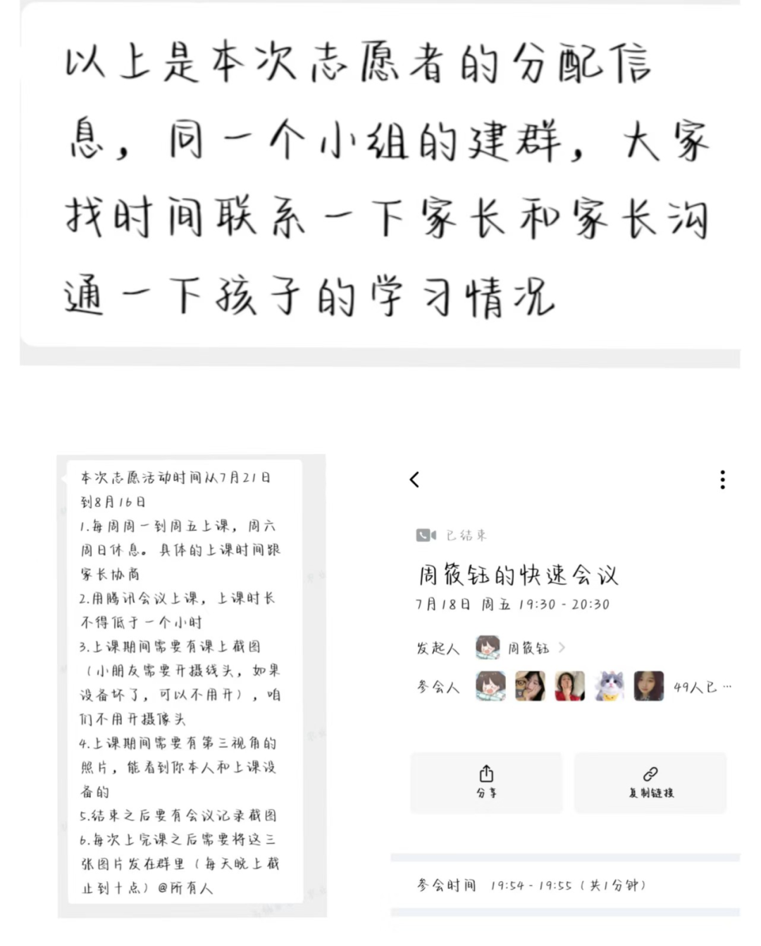 为了让自己有一个充实的暑假,当看到招募“学伴+”服务志愿者时,我便积极参加了报名。通过线上面试,成功成为“学伴+”志愿者,根据自己擅长的科目以及可教学的年级被分配同学,并建立学习小组,同时与家长沟通学习情况,制定接下来为期20天的学习计划。