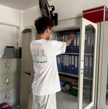 吉林农业科技学院机械与土木工程学院刘子杨,于暑假期间投身社区居委会,参与档案整理与居民接待志愿服务。