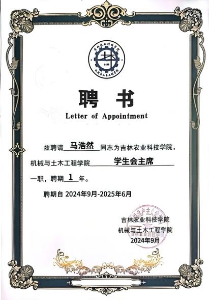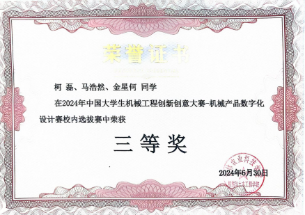 从学业深耕到科研突破,从竞赛夺冠到服务奉献,马浩然始终以“不待扬鞭自奋蹄”的自觉,在成长道路上不断超越自我。未来,他将继续怀揣热爱与理想,在机械领域持续探索,以更优异的成绩书写青春华章,为国家科技发展贡献青年力量。