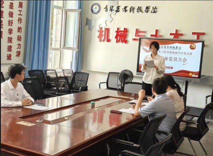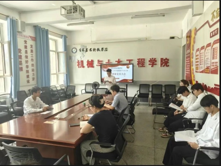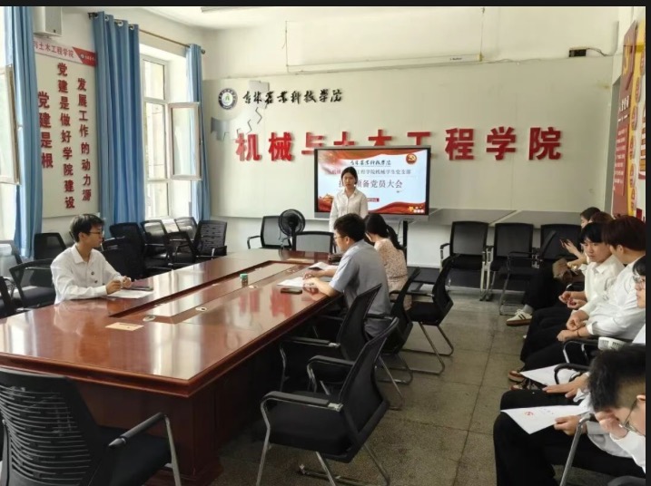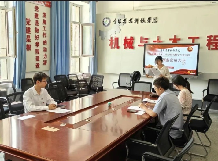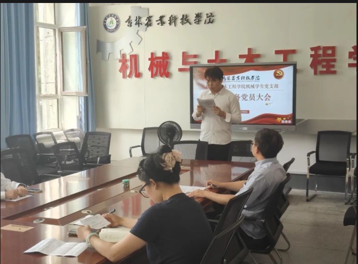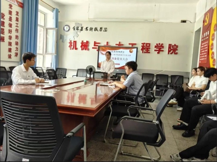 2025年7月8日上午10:30,我院机械学生党支部在耕读楼104会议室召开预备党员接收大会。学院机械学生党支部书记韩凯旭、党支部组织委员杨海燕、辅导员刘叶以及全体正式党员、预备党员共同出席此次会议,会议由韩凯旭主持。