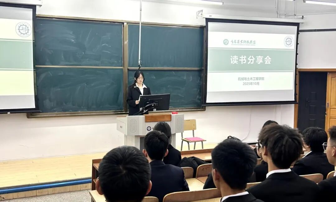 本次分享会由24级机械中外一班母洪泽主持,开场紧扣“以学铸魂、以学增智”核心,明确活动旨在以思想碰撞凝聚共识、提升能力;分享环节中,23级机械中外一班预备党员郝潇彤结合岗位实践传递理论学习价值,展现出党员以学促行的扎实作风,24级机械中外一班学生干部任思雨立足青年视角畅谈责任担当,以充满朝气的表达彰显新时代青年干部的担当,两场分享引发阵阵共鸣。